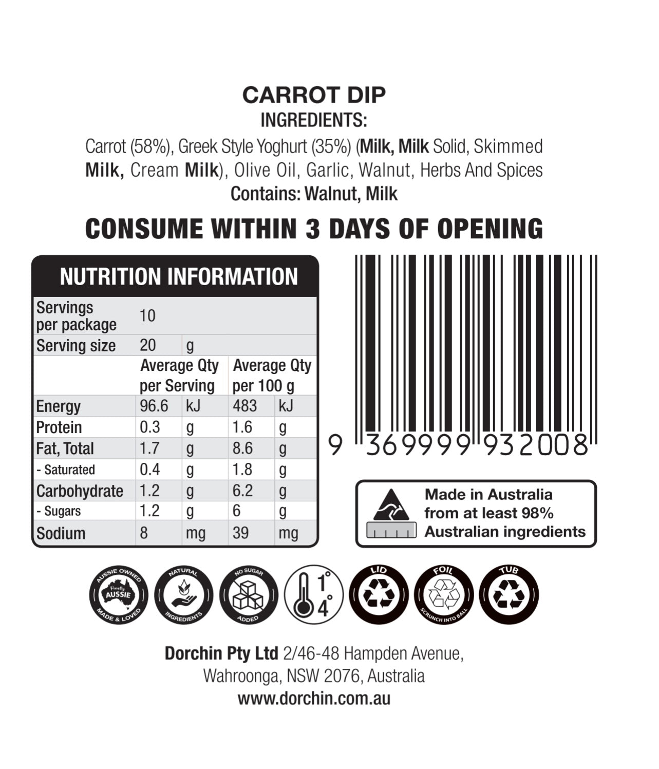 Savour the rich blend of sweet carrots and creamy yoghurt in our Dorchin Carrot Dip. Made from the finest carrots and enhanced with a unique blend of spices and a touch of citrus, this dip offers a perfectly balanced flavour with a smooth, velvety texture. The vibrant color and inviting aroma make it a standout at any gathering.
